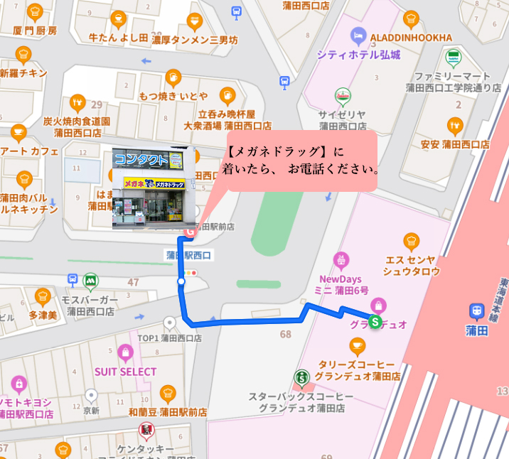 蒲田駅西口徒歩2分 ※駅に着きましたらお電話下さい。ご案内致します。